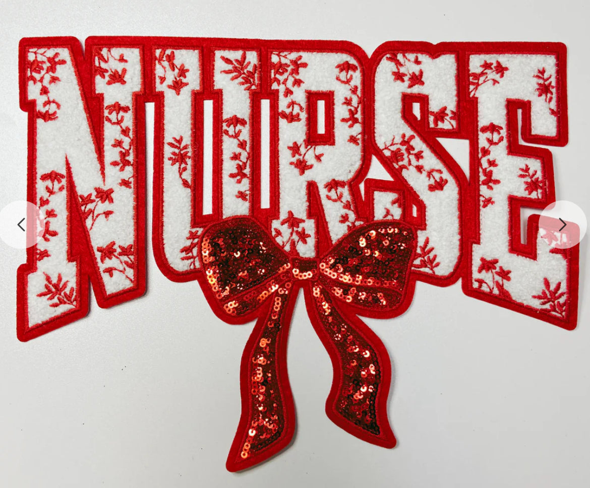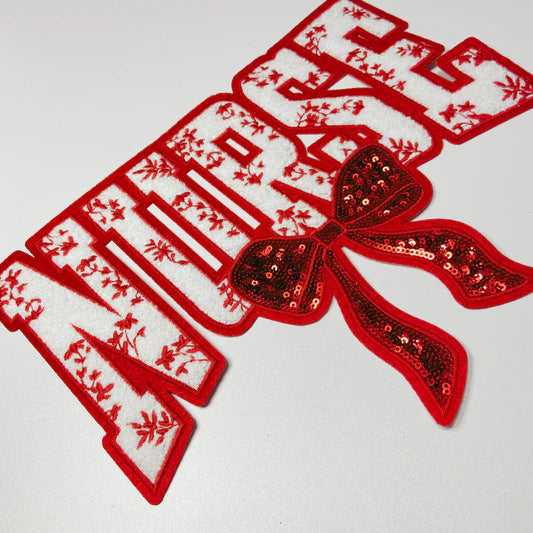 Red nurse sequins chenille iron on patch