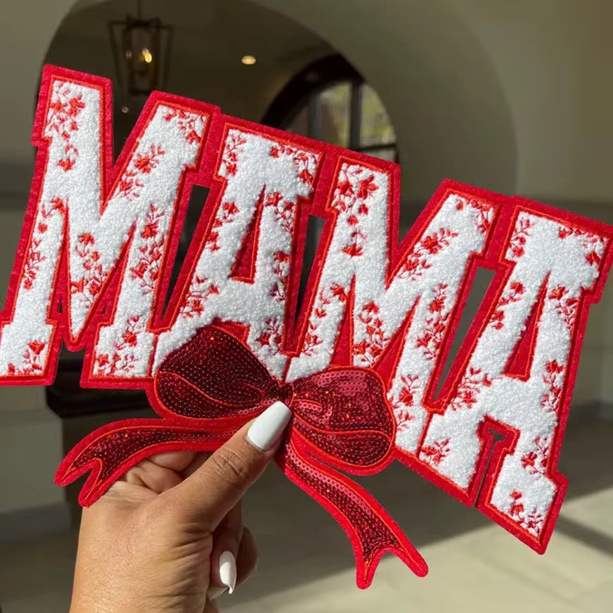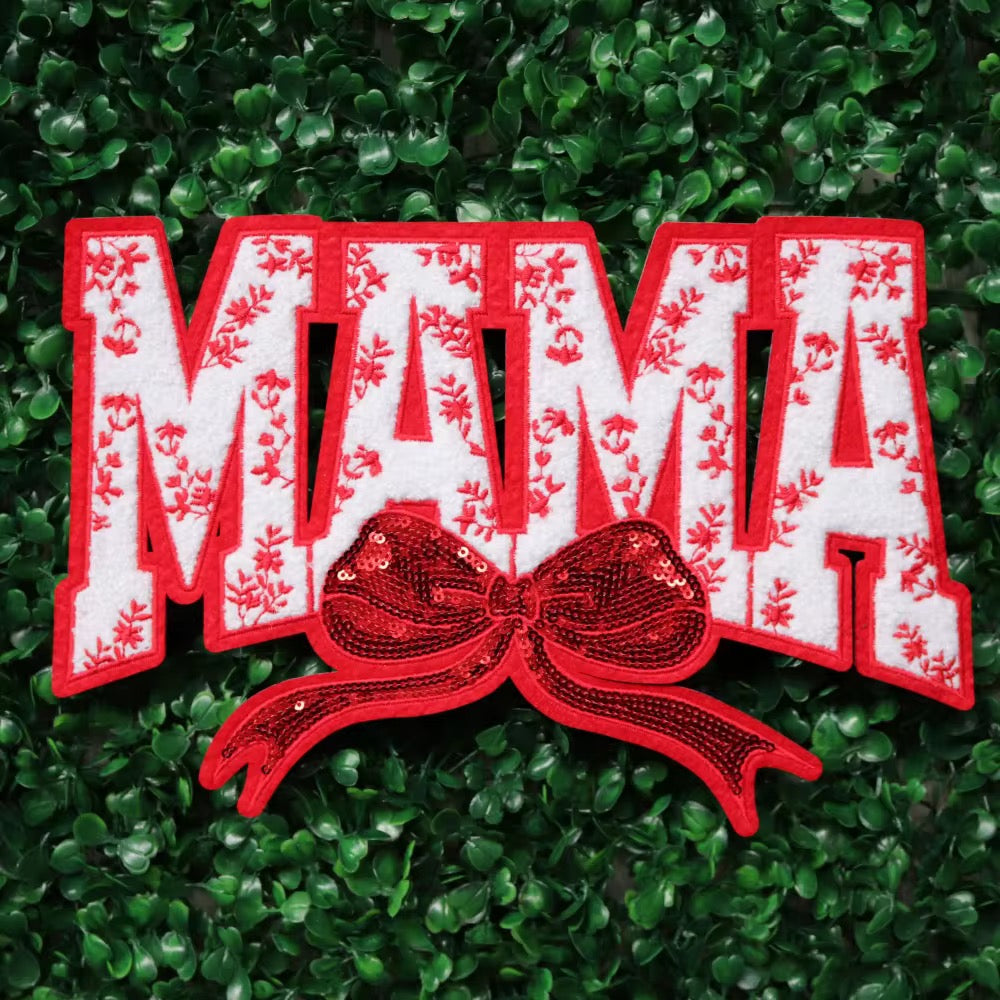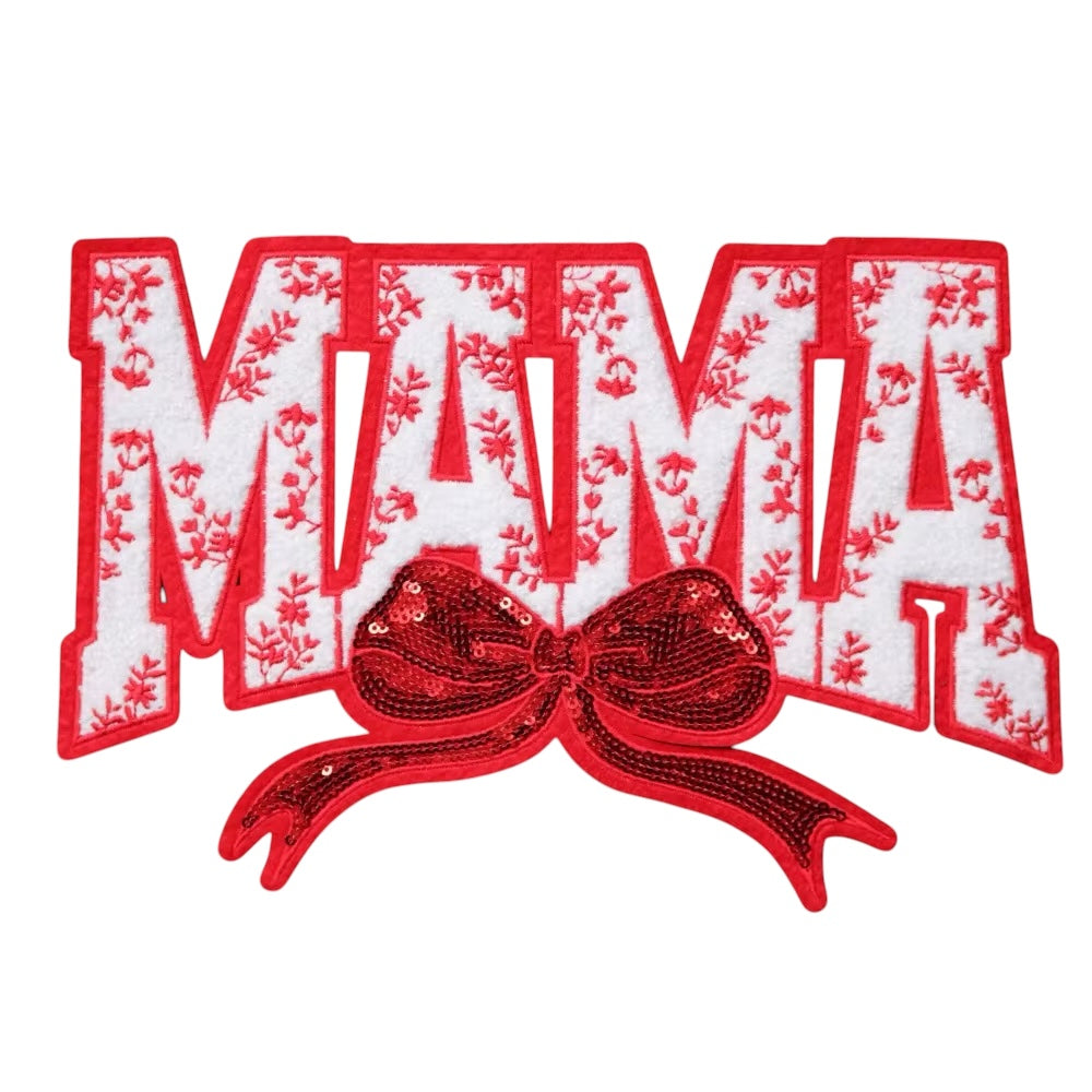 Red Mama sequins chenille iron on patch- match with our mini patch