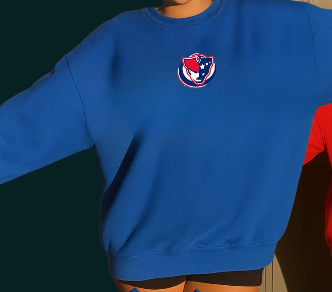 Patriots crewneck new logo (front small logo, back large patriots)
