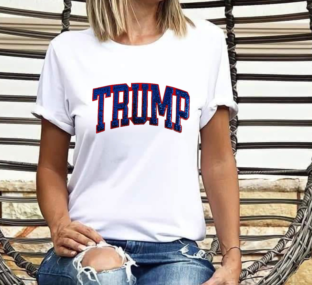 Red and blue trump sequins tshirt